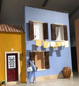 وظهر ديكور العرض وكأنه ساحة لمنطقة شعبية بفرنسا، حيث محلات البقالة ومخبز وبائع زهور، وأحبال الغسيل بالنوافذ، كما أعاد العرض أيضا شكل منازل الصيادين الصغيرة متعددة الألوان فقد أنشأ نسخة خيالية من جزيرة بورانو.